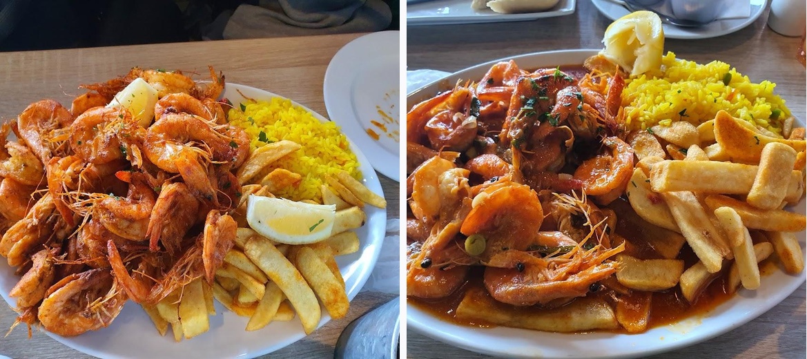 We usually order the 50 prawns platter with chips, rice, and trio sauces. The prawns were cooked perfectly and seasoned well. The tables are spaced out nicely, and it's a family-friendly place. The waitress that served us was very good. Parking is an issue. They have a very small parking next to the restaurant but it's always full. There are side street parking or paid parking nearby. Would definitely recommend it if you're a sea food lover.